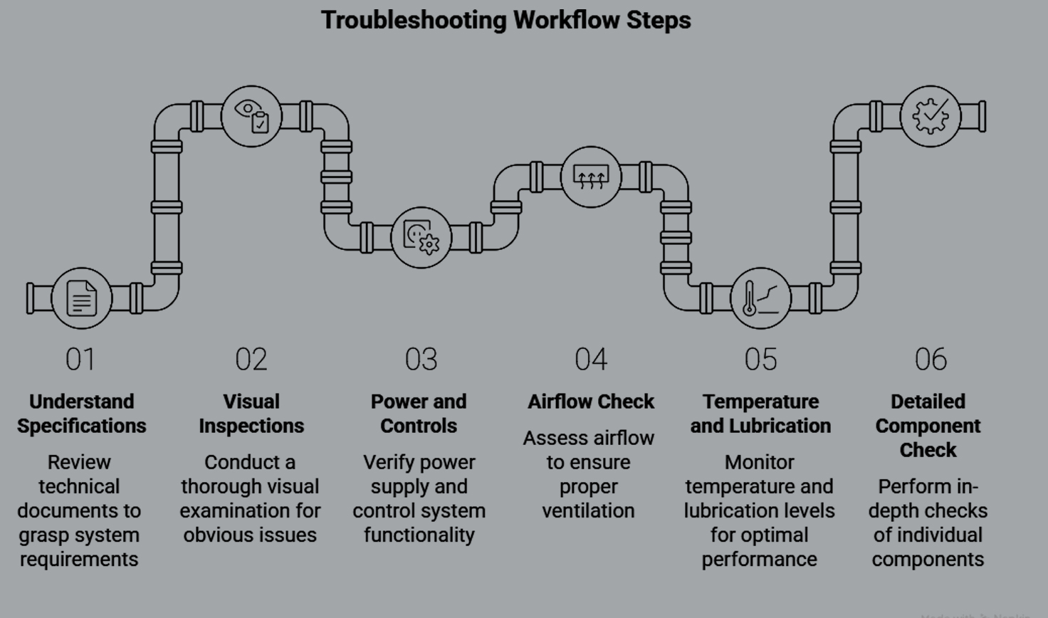 Always start with the basics: power, air, oil, and sensors. Keep a troubleshooting log. Trends show up only when tracked. Never “band-aid” major issues–temporary fixes usually cost more later. They can resolve 85% of issues during the very first visit—provided they follow a detailed, systemized approach.